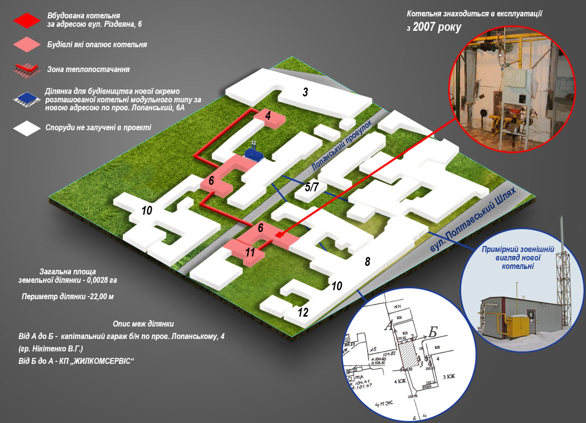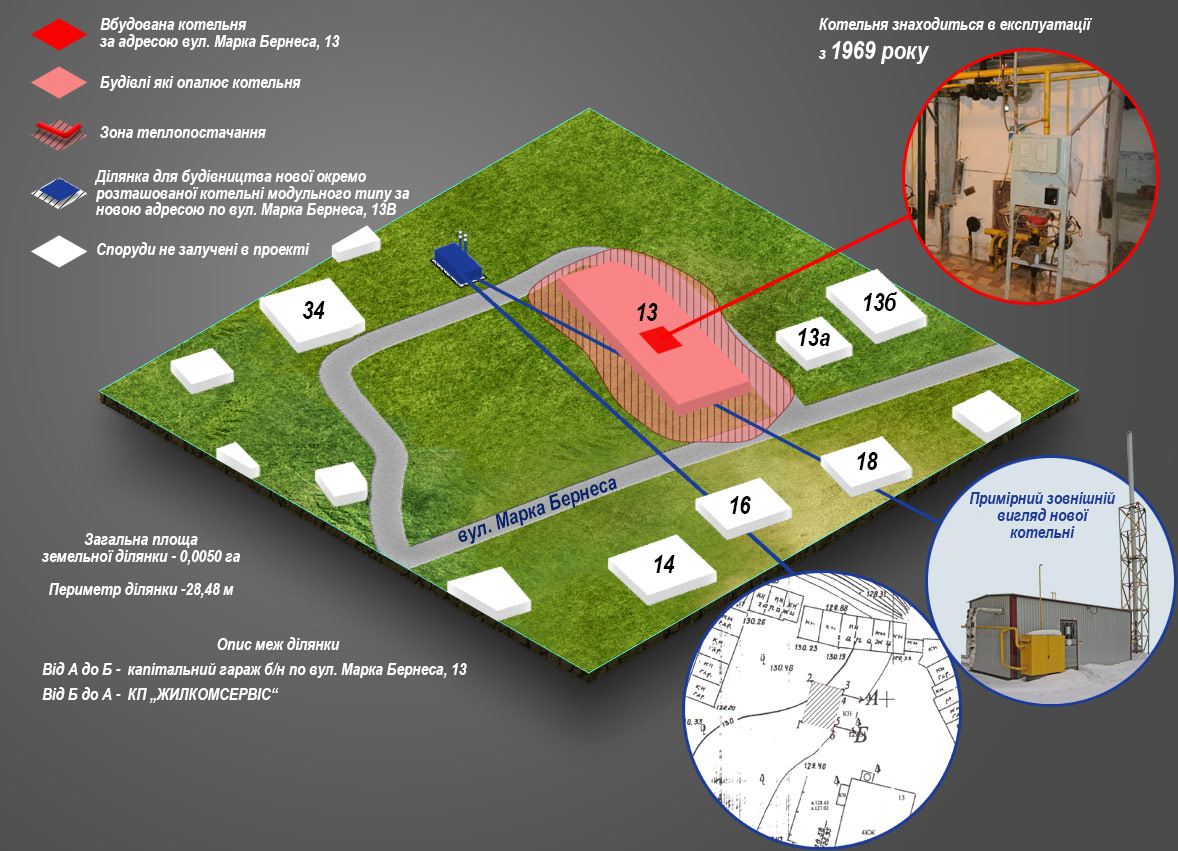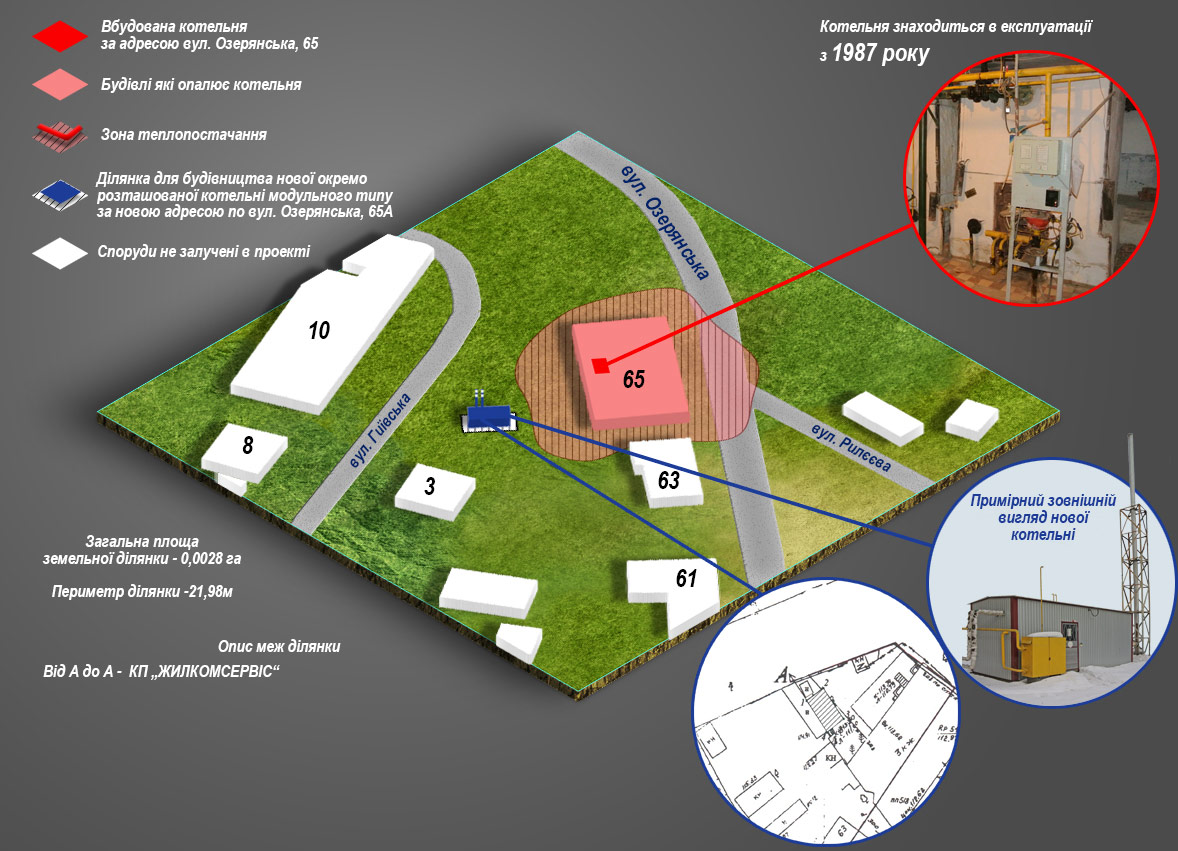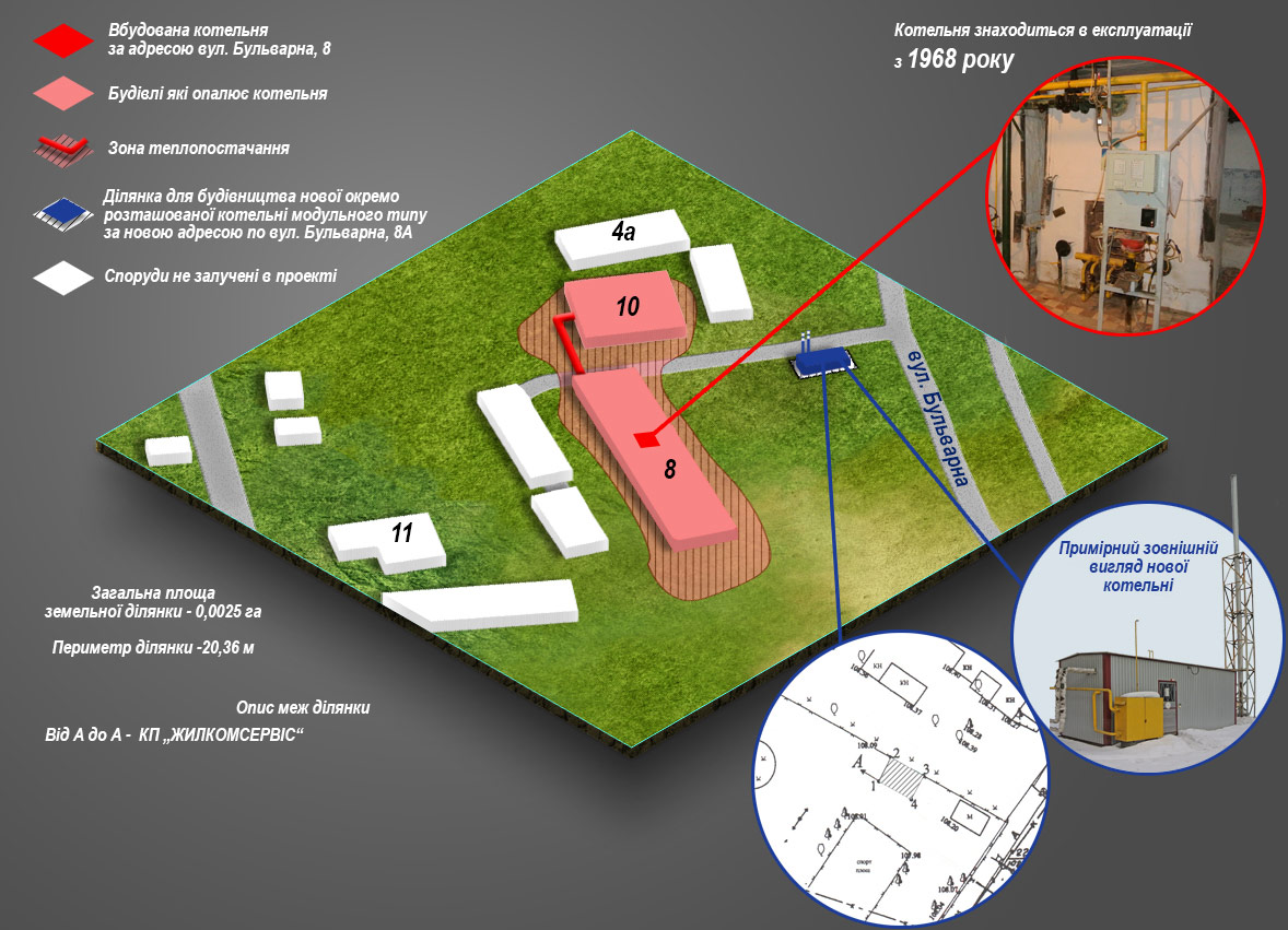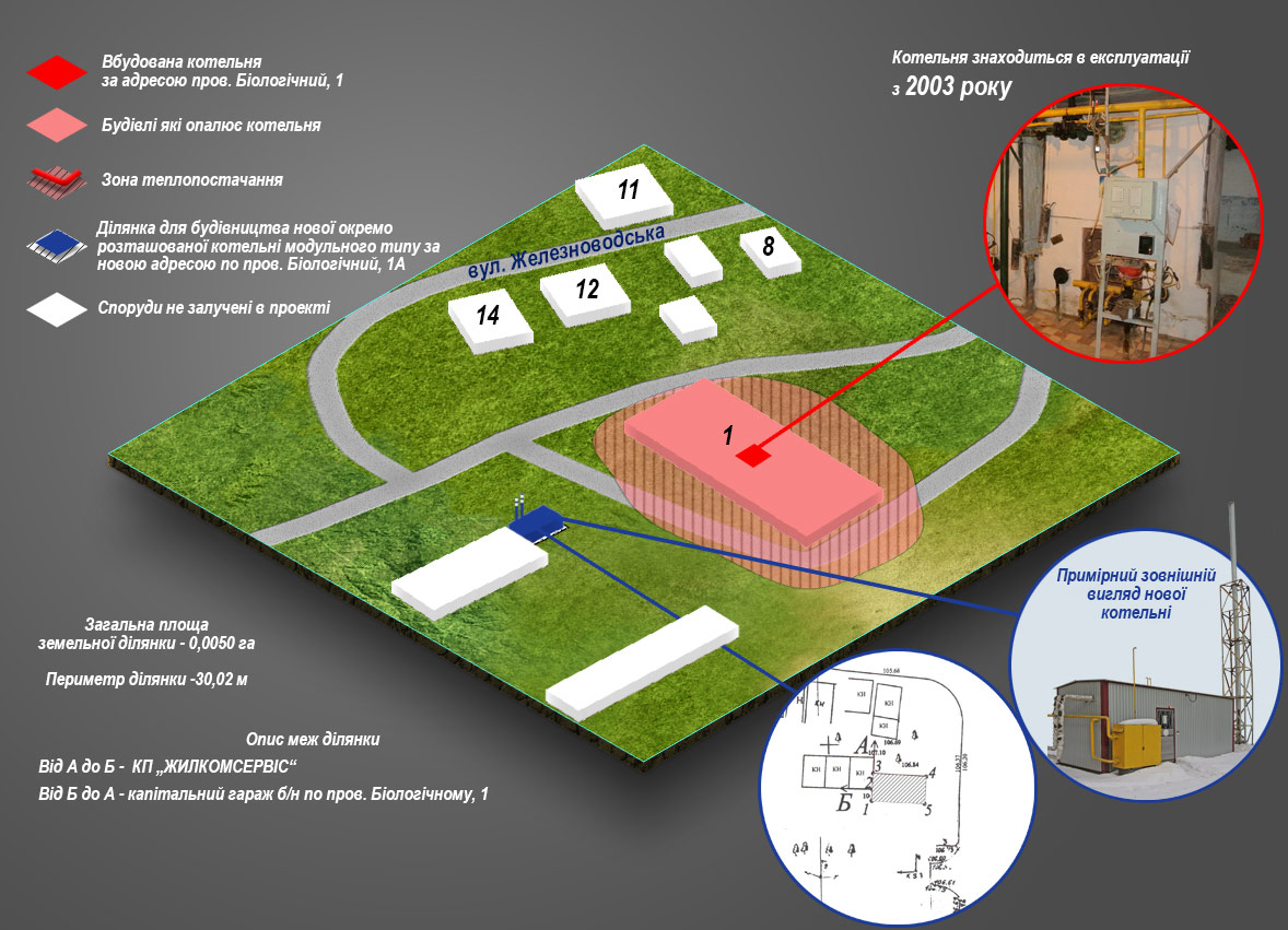 - опис земельних ділянок для влаштування нових модульних котелень;