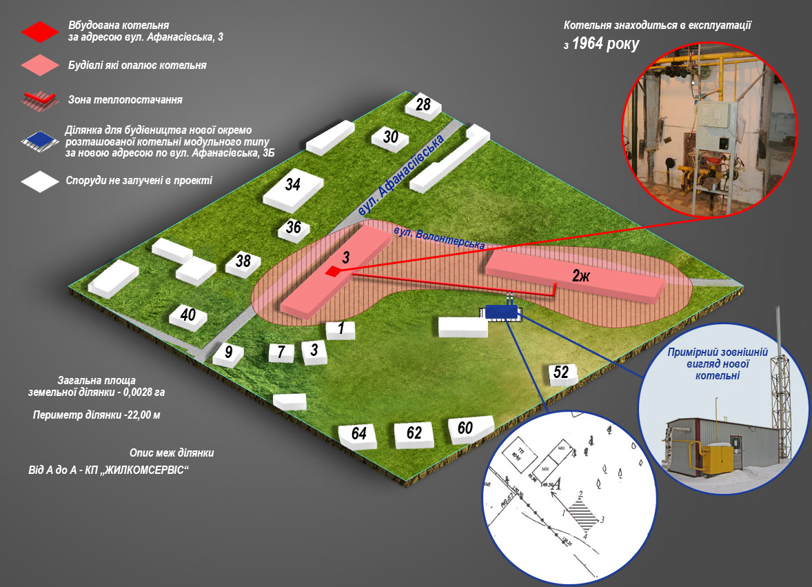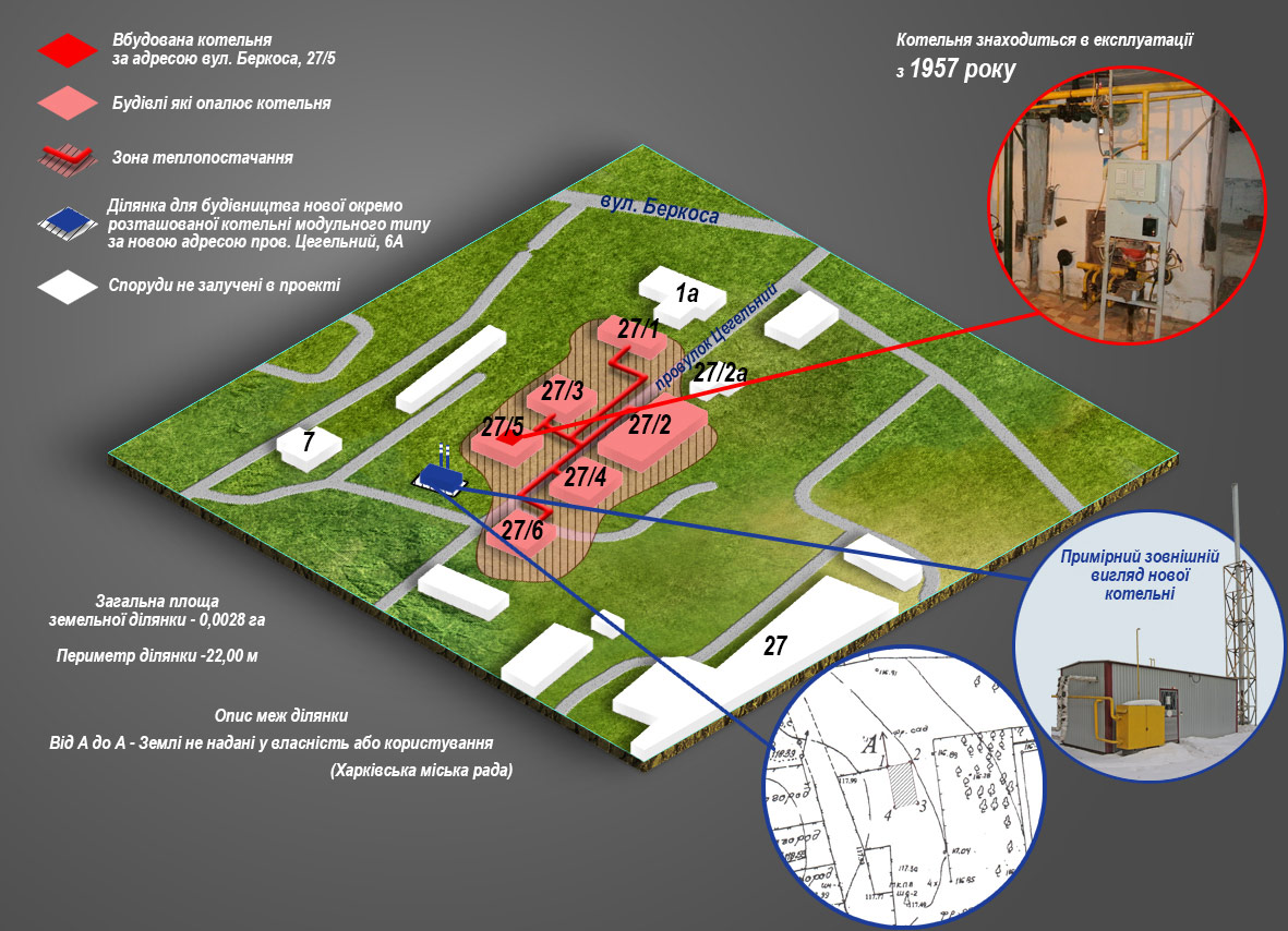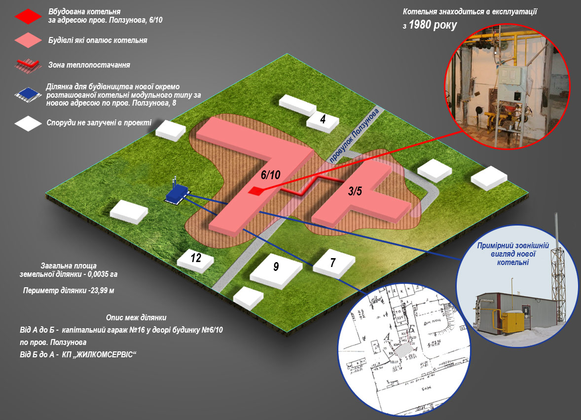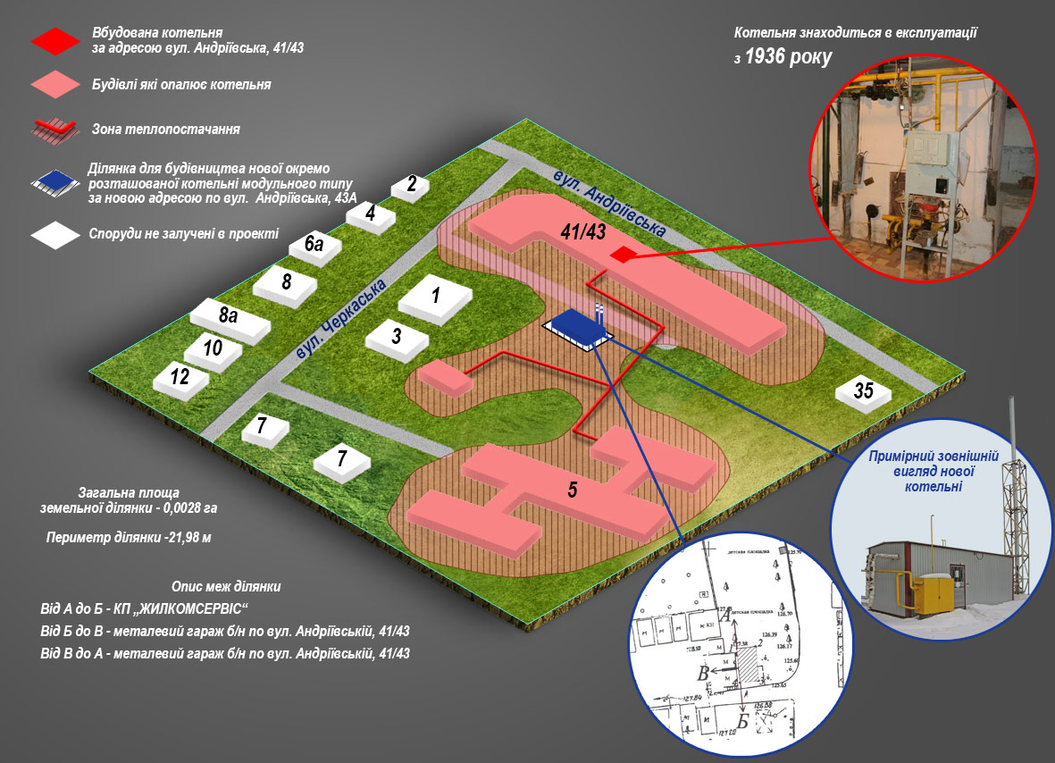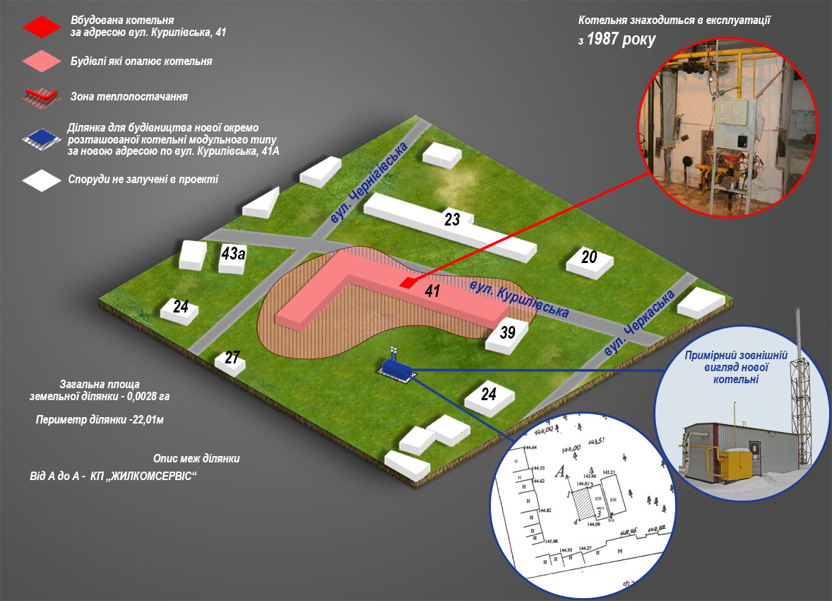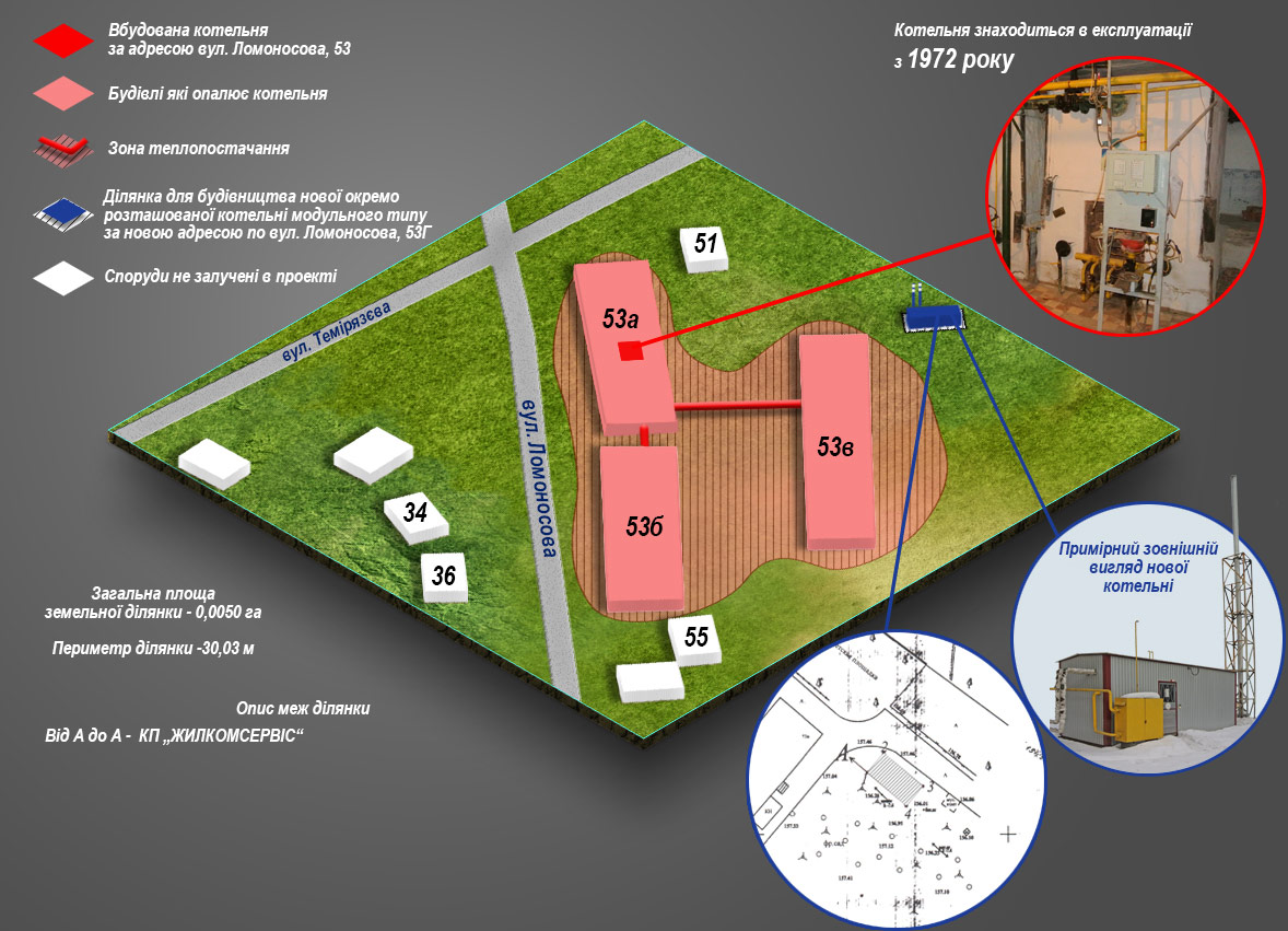 - опис земельних ділянок для влаштування нових модульних котелень;