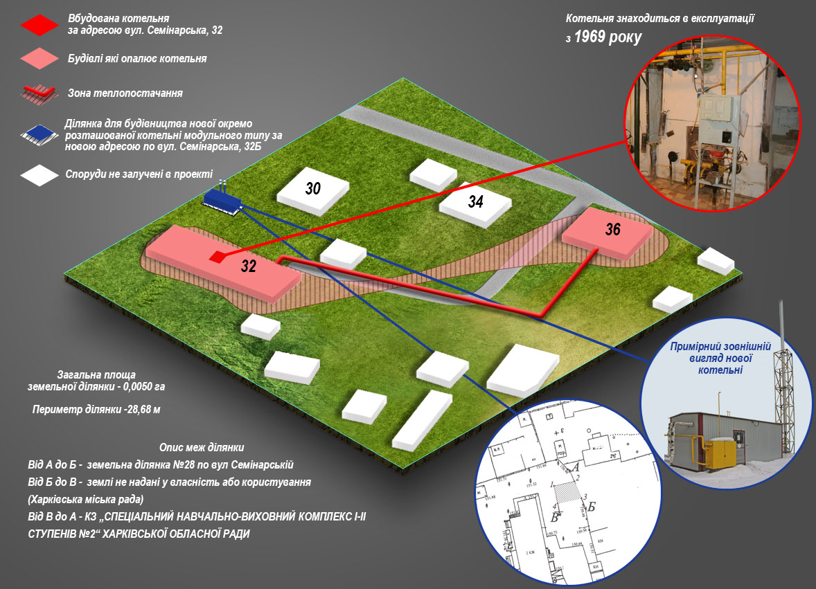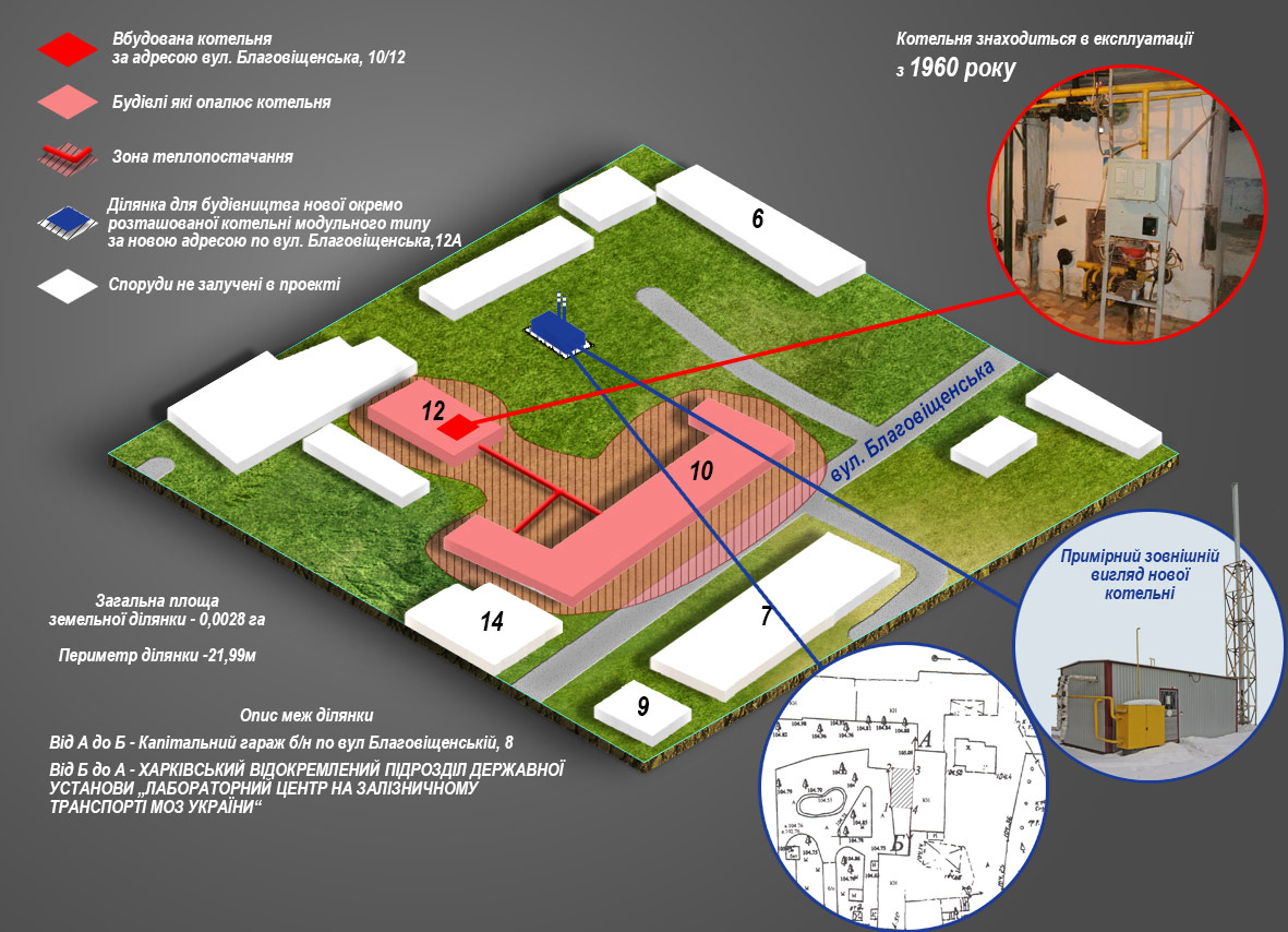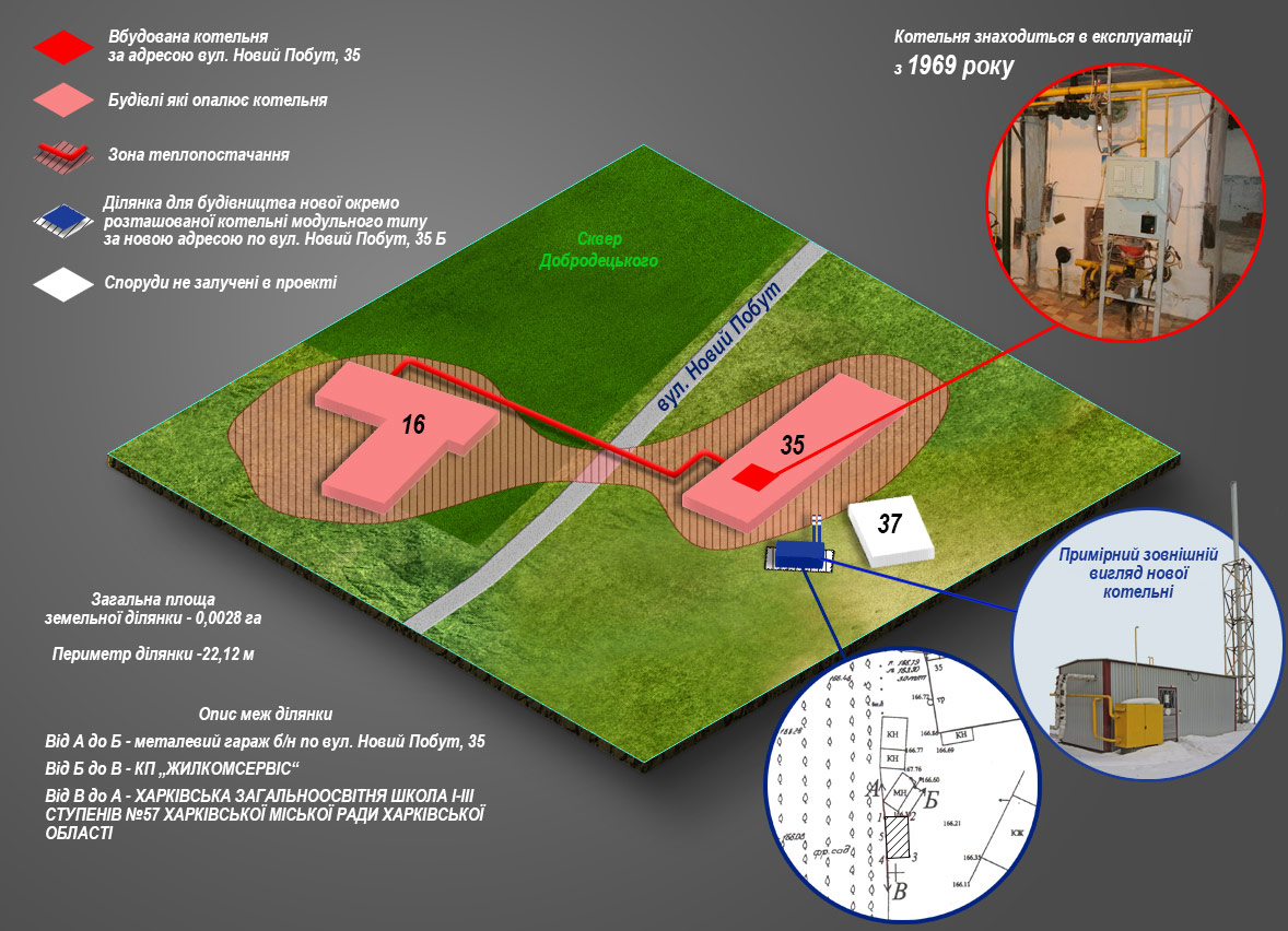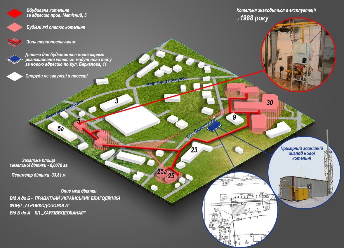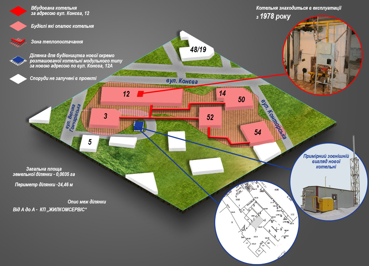 - опис земельних ділянок для влаштування нових модульних котелень;