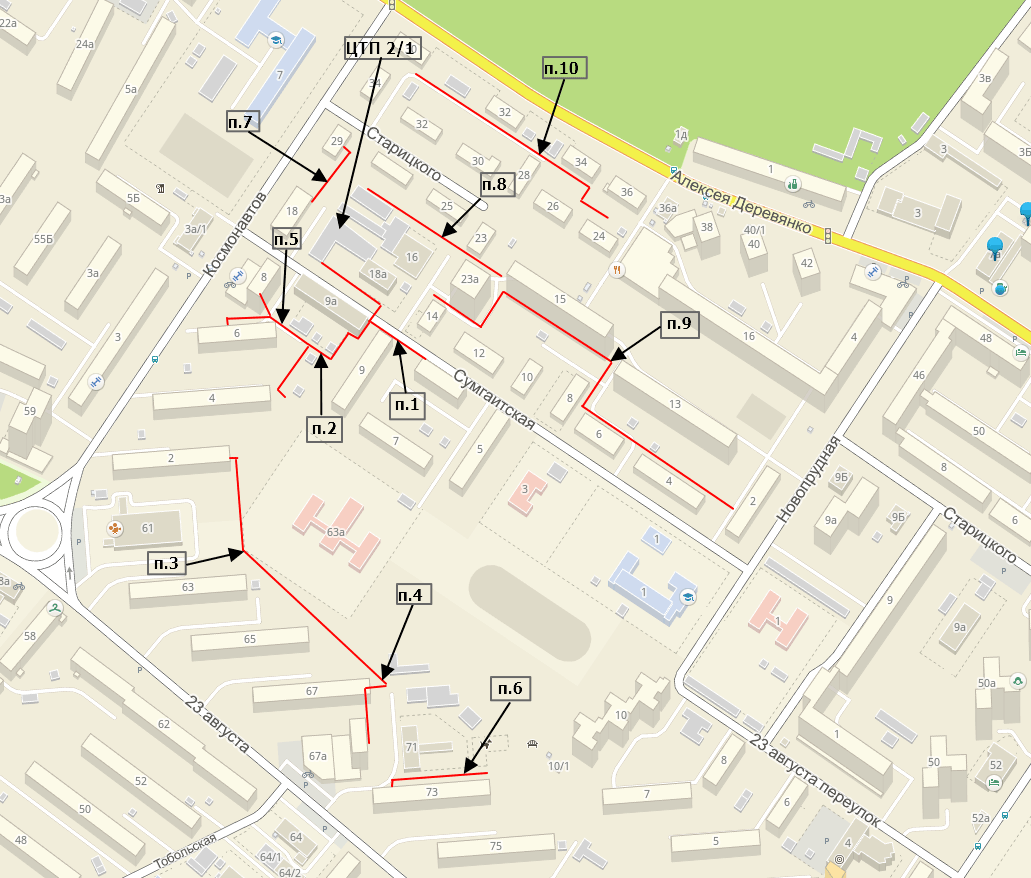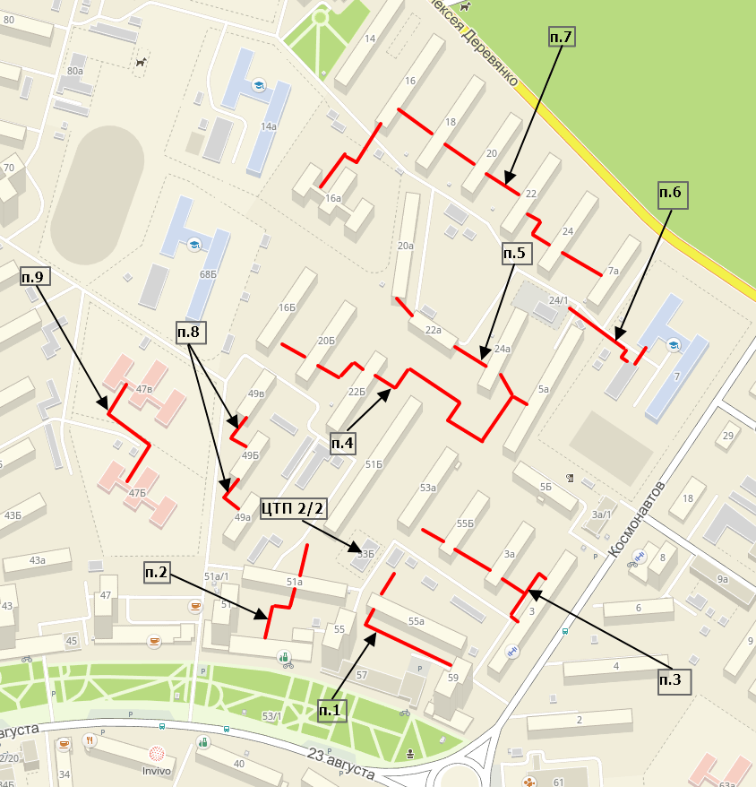 | 9 | від ТК422/2-12 до будинків № 47Б, № 47В вул. 23 Серпня | |