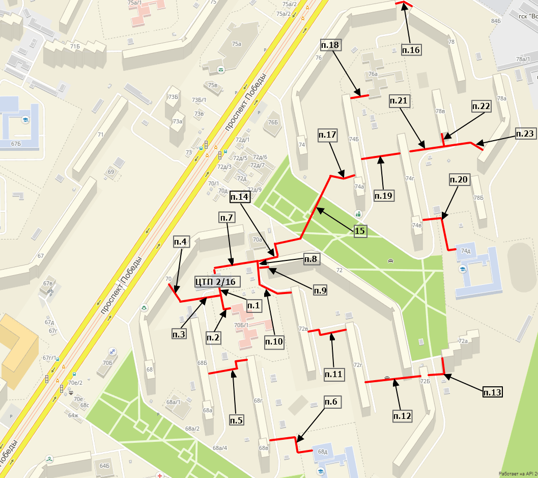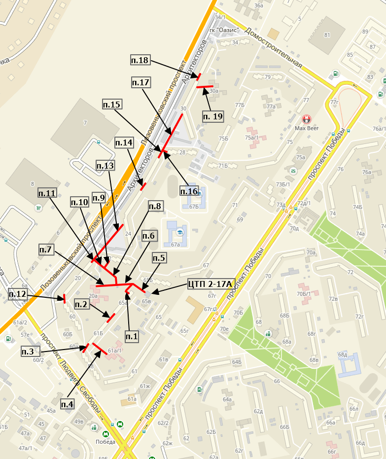 | 11 | від ж/б пр. Победы,72В до ж/б пр. Перемоги, 72Г | |