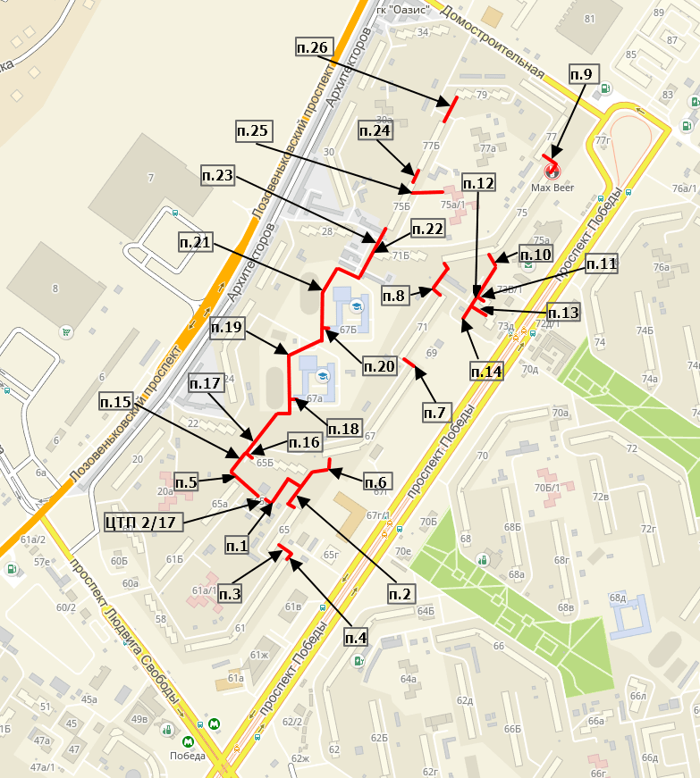 | 2 | від ТК482/16-1 до будинку пр. Перемоги, 70Б | |